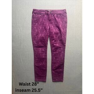 This lot of 4 Free People jeans in sizes 27 and 28 are stylish and versatile, featuring a mix of solid colors and floral patterns. Made from a comfortable cotton blend material, these regular fit jeans have a zip and button closure, as well as a 5-pocket design. The jeans are accented with unique details like distressing and embroidery, adding a touch of flair to any outfit. Machine washable for easy care, these jeans are perfect for a casual day out or a night on the town.
