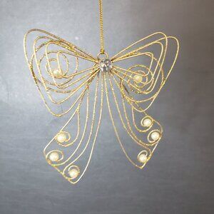 Lot of 4 Gold Glitter Christmas Tree Ornaments Bows with Faux Pearl