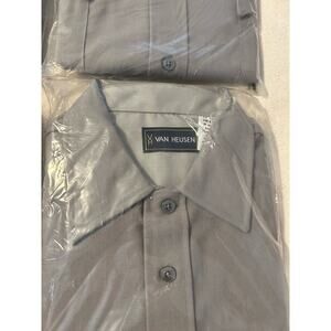 Lot of 4 Gray Van Heussen Shirts. Size 15 1/2. New in Bag. 3 short sleeve shirts and 1 long sleeved. Made with 65% Polyester and 35% Rayon.