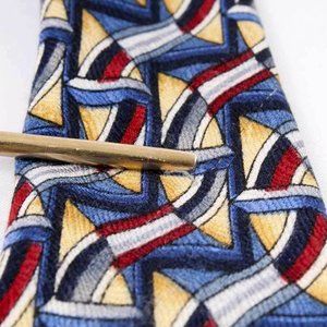 - Blue, Red, White & Yellow Geometric / L: 55 1/2" x W: 3 3/4" (Few tiny snags on front & some stitching on tail has popped)
