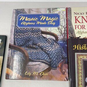 Lot of 4 Knitting Pattern Books Mosaic Magic Afghans Historical Figures Pillows