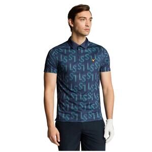 3. Patterned Blue Polo – Unique “LS” print design with yellow eagle logo
