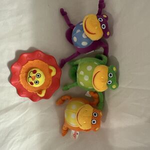 Lot of 4 Sassy Plush Baby Toys 4 Monkey & Polka Dot Hippo Soft Rattle Cat like
