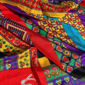 Lot of 4 Scarfs Set Multicolor Kenzo Yves Saint Laurent & Valentino Silk 35"