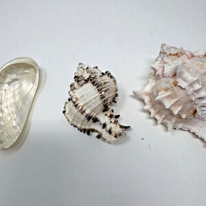 Lovely lot of 4 seashells featuring Abalone and Spiny Murex shells, each measuring approximately 2–3" long. Together, the set weighs about 4.3 oz, making them perfect for beach-inspired décor, crafts, or shell collections.
