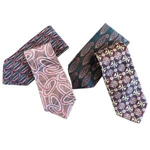 3. Eggplant color, gold and white paisley on green background.  XMI 325 Series for Nordstrom. 100% silk, made in the USA.  56" long, 4" wide at widest point.
