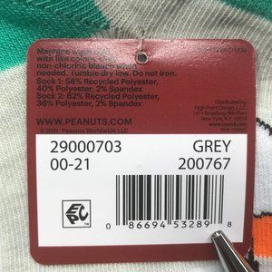 • Sock 1 Peanuts 58% Recycled Polyester 40% Polyester 2% Spandex