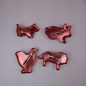 Lot of 4 VTG Metal Copper Cookie Cutters Animals Chicken Dog Bunny Lion