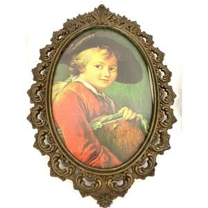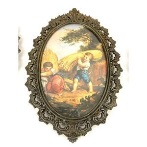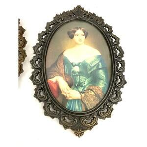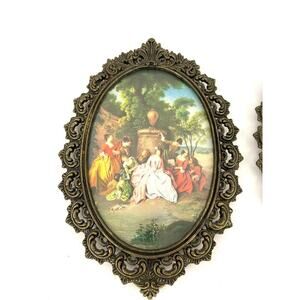 Lot of 4 VTG Hollywood Regency Filigree Metal Oval Picture Frame Art Nouveau Italy