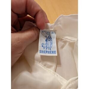There are 4 outfits. A montgomery ward sleeper that is 0-14 pounds, a nazareth pj set that is a m(2) - there is a small hole in the crotch and the elastic on the pants is no longer stretchy. a blue gingham outfit with hat, there is not a size on it. a 3 piece christening outfit that is styled by the shepard brand, it is a layette size.