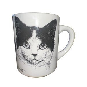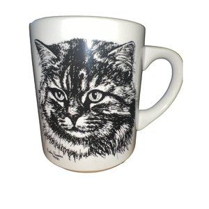 Lot of 4 lightly used Cindy Farmer cat mugs. Beautiful black and white portraits of different cats. Dated all from 1986. Mugs have no chips or cracks. Normal sized mug.