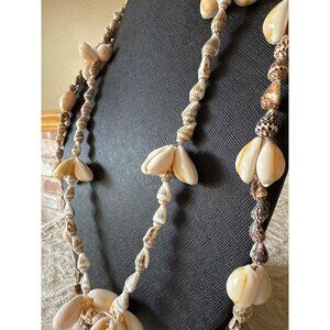 Natural cowrie + cone shells, hand-knotted on cord