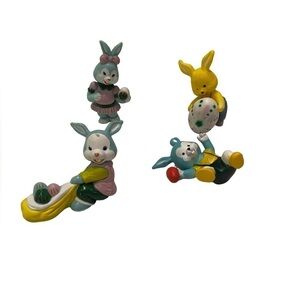 Lot of 4 Vintage Easter Bunny Basket Plastic Toys Figures Figurines