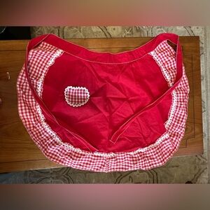 Charming lot of four vintage handmade half-aprons featuring classic gingham patterns, ruffled trim, and sweet cottagecore details like rickrack and pleating. All are cotton or cotton blend, handmade, and in very good vintage condition with no major flaws. Perfect for costume wear, nostalgic kitchen decor, or actual use by retro-loving home bakers.