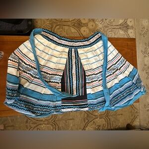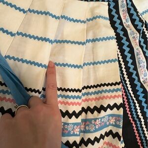 • Colorful ribbon-stripe folk design with pleats and blue ties