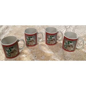This lot of 4 vintage National Wildlife Federation rabbits coffee mug cups features a charming design with a round shape and a capacity of 16 oz. Made of ceramic and porcelain, these medium-sized cups are decorated with a multicolor rabbit pattern, making them ideal for both hot and cold beverages. The vintage design and National Wildlife Federation branding add a touch of nostalgia, making them a perfect collectible item for animal lovers and collectors alike. Perfect for any occasion, these cups are a charming addition to any kitchen or dining collection.
