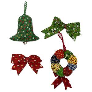 Lot of 4 Vintage Quilted Fabric Patchwork Christmas Tree Ornaments Handmade