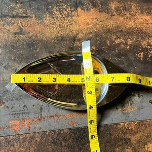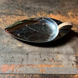 * (1) Leaf-shaped Silver Plated Serving Tray with Wooden Stem Handle - 9" length including handle x 4" width