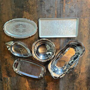 Lot of 4 Vintage Silver Plated and 2 Aluminum Serving Trays/Platters/Bowl