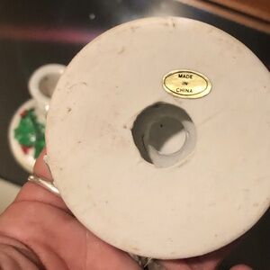 Lot of 4 Vintage White Glazed Ceramic Short Taper Candle Holders~Christmas Holly