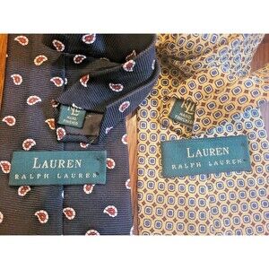 Lot of 4 Vtg Polo Ralph Lauren Silk Tie Hand Made USA Yellow Red Dark Blue Navy