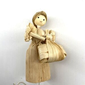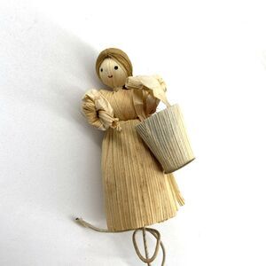 Lot of 4 Vtg Retro Christmas Tree Ornaments 3" Corn Husk Country Girls Cottage