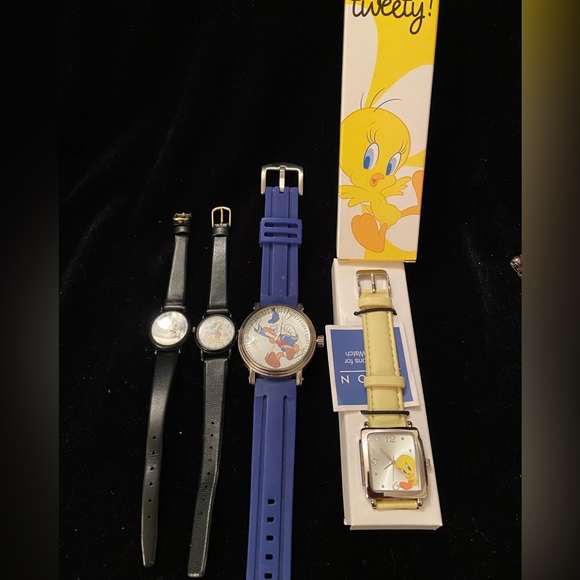 Lot of 4 Watches Tweety Bird NIB, Donald Duck Disney, Lorus Mickey Mouse & Stars