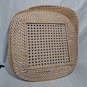 Lot of 4 Wicker Rattan Paper Plate Holder 13" Square Tray, Decor Natural Cottage