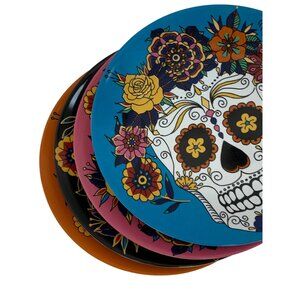 Lot of 4 Williams Sonoma Day Of The Dead Plates 8.5" Skull Food Safe Halloween