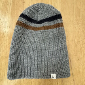 1. VISSLA - dark gray beanie with a white “Boston” embroidery and a pom-pom.