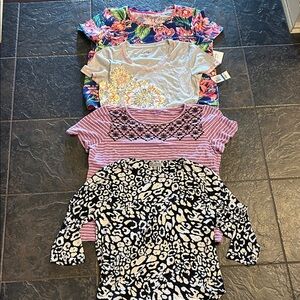 Lot of 4 petite XL.Talbots Short Sleeve Tops - Floral, Striped, and Animal Print