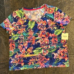 Vibrant Talbots tops with floral, striped, and animal prints. Perfect for casual outings. Style Co tshirt NWT, Rafaela tshirt NWT, Talbots shirt good condition, no tag, JM collection good condition, no tag.