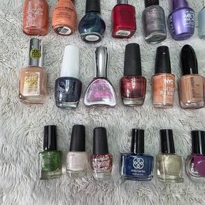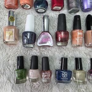 This bundle includes 40 assorted nail polish bottles in a wide variety of beautiful shades and finishes — perfect for nail art, salons, or anyone who loves trying new colors! The collection includes gel, glitter, shimmer, metallic, and classic gloss finishes from several popular brands.