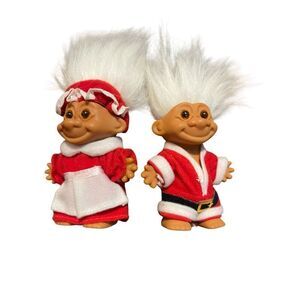 Lot of 4 Santa Mrs. Claus Caroler Red Green Christmas Ornaments Troll Dolls