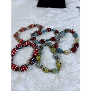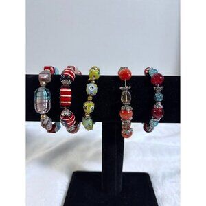 Lot of 5 Art Glass Lampwork Millefiori Cat's Eye Crackle Beaded Stretch Bracelet