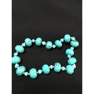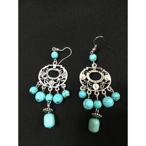 A lot of five bracelets and a pair of earrings in turquoise gold silver and coral colors. Four of the bracelets feel like plastic beads but the last one is better quality, a little heavier and more like turquoise.