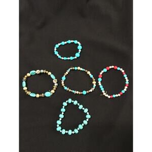Lot of 5 Bracelets & 1 Pair of Earrings, Turquoise Gold Silver & Coral Colors