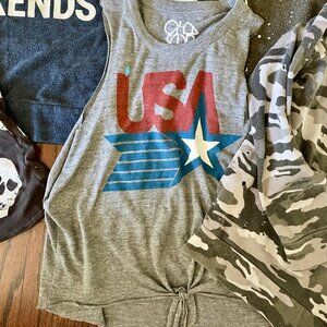 Lot of 5 CHASER Women's XS and Small Tops and Sweatshirts USA LOVE Camouflage