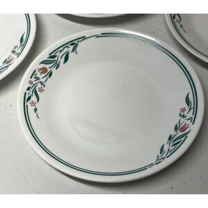 Lot of 5 Corelle Rosemarie 6.75 Inch Dessert Bread Plates Tulip Green Pink VTG