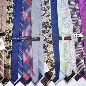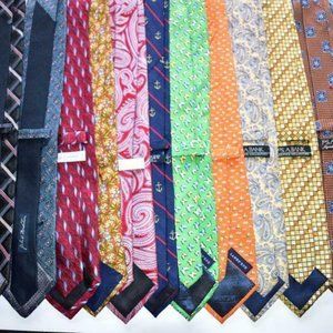 Lot of 5 ties (assorted brands). Shelf pulled lots. These ties retail from $25 to $160 each. Country of manufacture: Italy, USA, England, France and more.