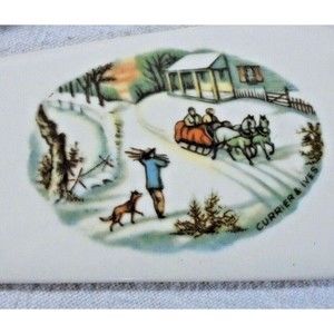 Accents/Features: 2 different winter/country/Christmas scenes on each plate and server. Three plates of one scene, two plates of another scene.