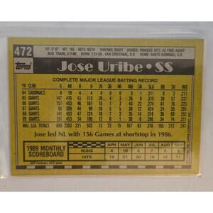 This lot includes 5 different Jose Uribe baseball cards. They are all in great shape! These are the cards included: