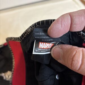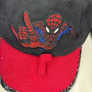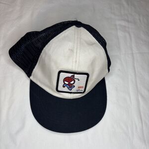 White/Navy blue Spiderman Hat- Minor stains in good condition.