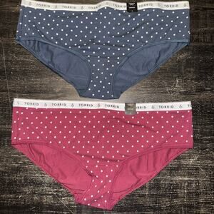Lot of 5 Torrid panties size 1 or 1X new with tags as shown in pictures. 4 hipsters and 1 cheeky.