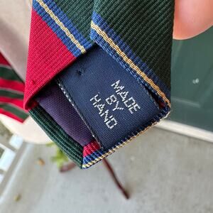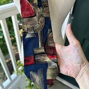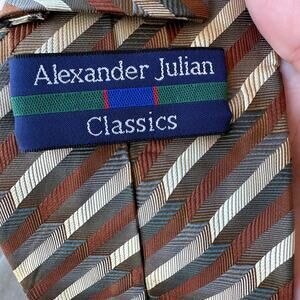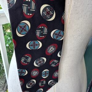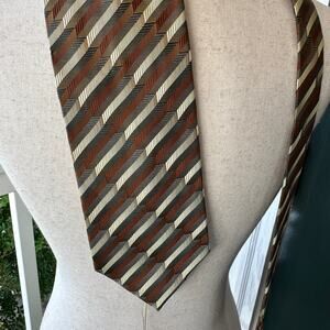 Curated vintage silk tie bundle featuring five classic designer and specialty shop ties in rich, autumnal colorways and timeless prints (paisley, geometric medallion, regimental stripe, and abstract). Each tie is cut from 100% silk — several from Italian silk fabrics — and was hand-selected for its heritage aesthetic and cohesive color palette. Great for grandpa-core, retro Ivy/preppy, or finishing fall suiting and dark academia looks.