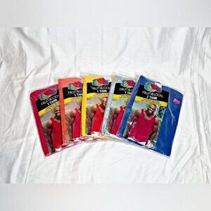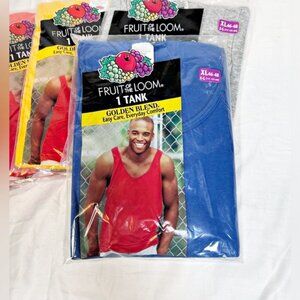 This is a Lot of 5 Vintage 2002 Fruit of the Loom Men's Golden Blend Tank Tops. There is a red, orange, yellow, blue and gray tank top, each brand new still in the original package.