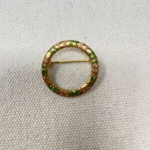 A set of five unique vintage brooches featuring Christmas, Art Deco, bow, angel, and floral designs. Perfect for adding a classic touch to any outfit, these gold-toned metal pins are ideal for women who appreciate timeless elegance.