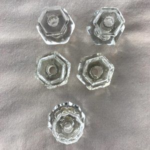 Lot of 5 Vintage Clear Glass Mismatched Cabinet Pulls / Drawer Knobs