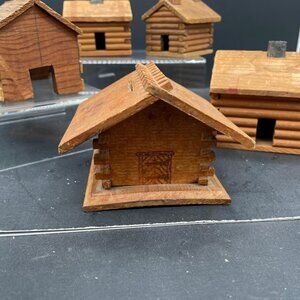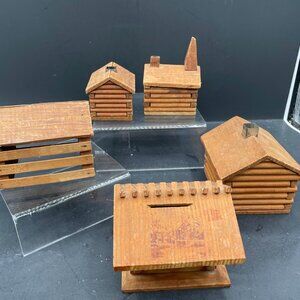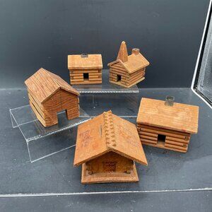 Lot of 5 Vintage Miniature Log Cabins Houses Church Incense Burners Banks