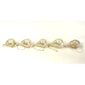 Lot of 5 Vintage Teardrop Glass Push Pin Ornaments w/ Trim Beads – 2" Holiday